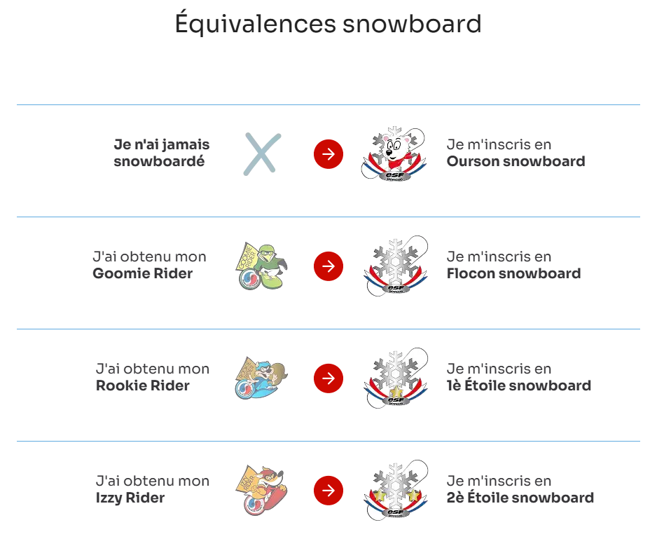 Du niveau Snow Ourson (débutant) à 2ème étoile snowboard